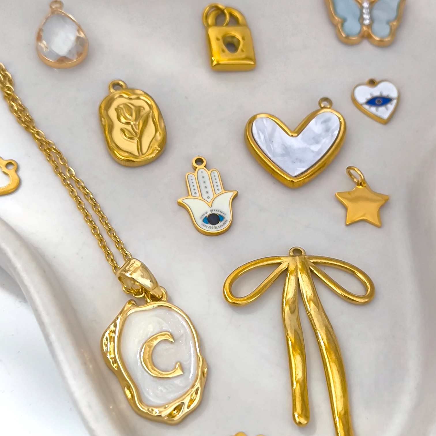 Un lazo delicado y simbólico que representa unión, cariño y belleza atemporal. Su diseño fluido y elegante lo convierte en un charm versátil, perfecto para añadir un toque femenino y especial a pulseras, collares o cadenas personalizadas. Ligero, resistente y pensado para brillar cada día.